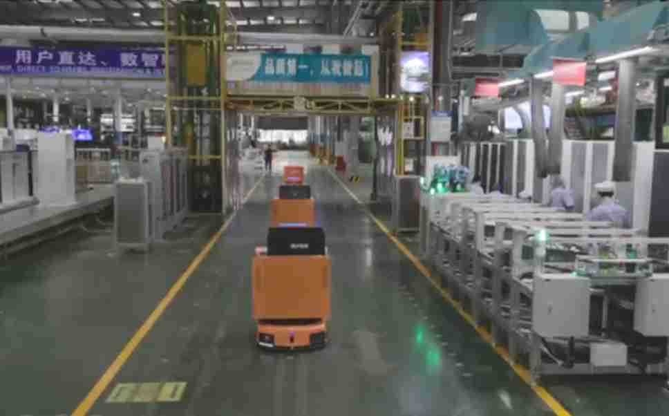 为车载冰箱物流配送打造的智能解决方案,,,包含产中物流通过潜伏举升AMR搬运至线边,,产后成品物流智能仓储,,,流程包含产中物流智能齐套入库,,,线边安灯叫料AMR智能配送至线边,,成品入库、、、出库,,,,通过无人堆高车机器人,,智能仓储管理替代人工作业管理,,实现更高存储、、、更高效率、、、更具柔性化的解决方案。。。