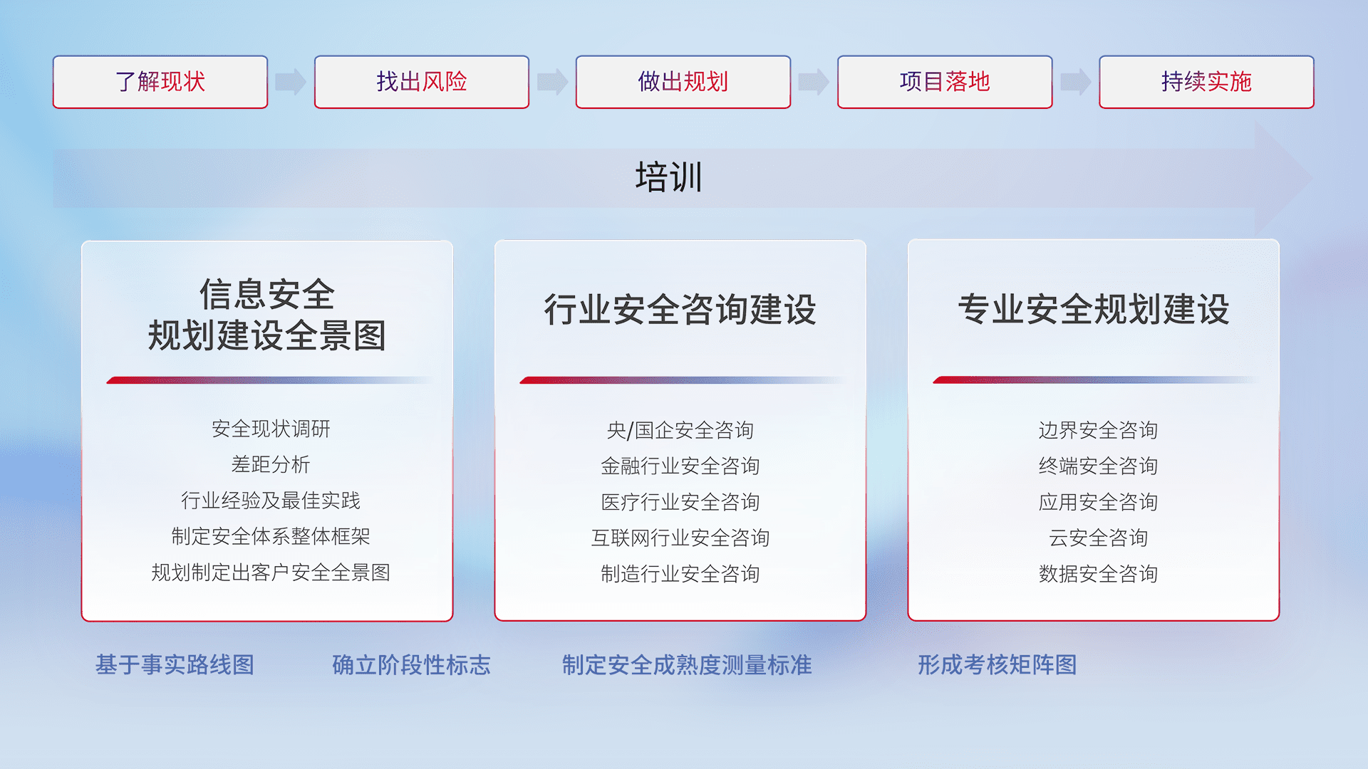 梳理客户信息安全现状调研、、、差距分析结果,,结合行业先进经验及最佳实践,,制订客户的信息安全管控体系总结架构,,最终形成一个完整的客户信息安全规划与建设的全景图。。。。