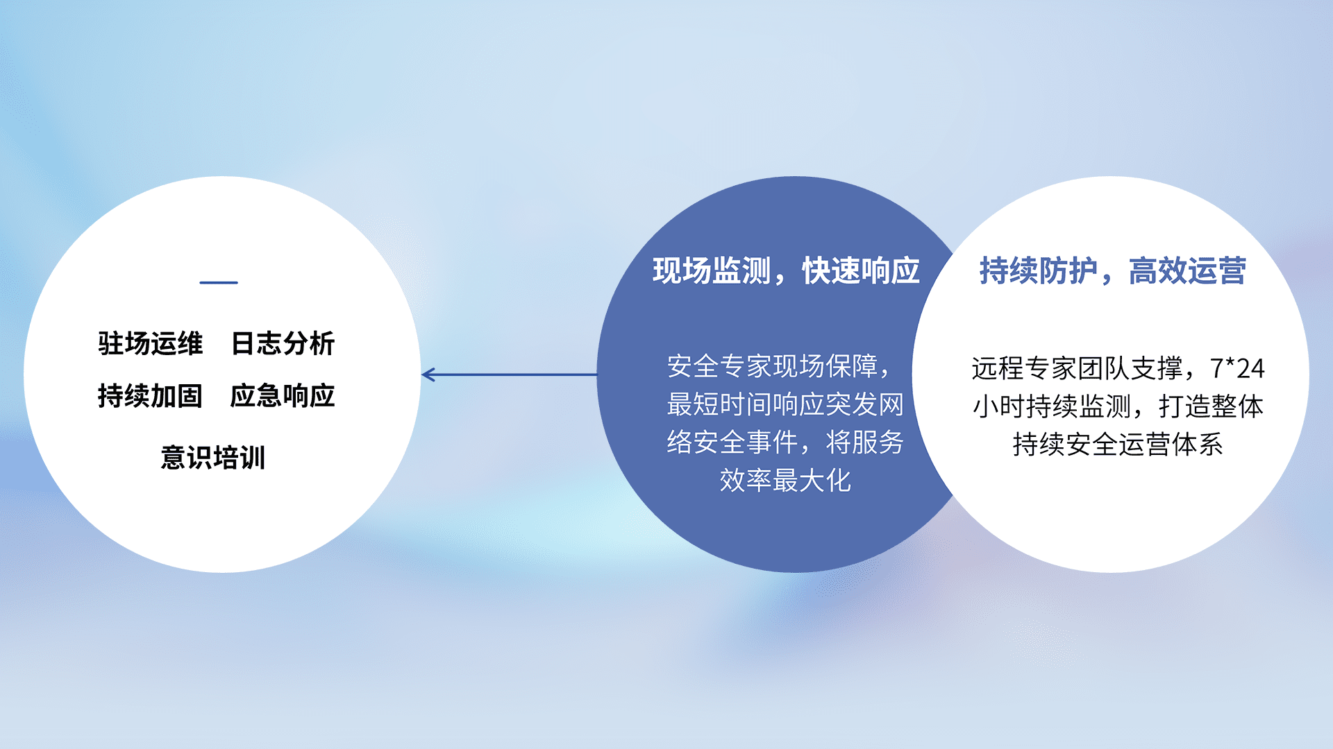 针对客户行业特性,,提供专属的一站式安全管理服务,,帮助客户全面感知网络空间威胁,,,,通过安全专家的线上、、、线下防护支持,,实现风险闭环,,,将安全保障常态化,,,为客户打造常态化安全运维运营服务。。。