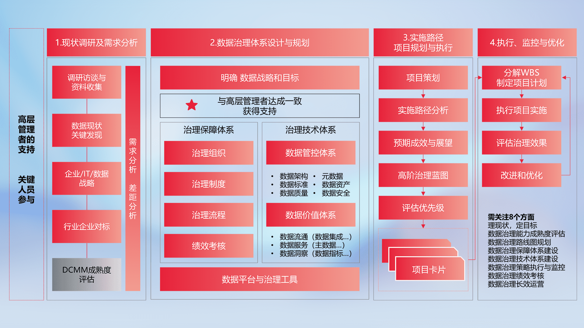 制定并执行统一的数据标准,,规范数据定义和格式,,消除冗余和不一致性,,,,实现跨部门和跨系统的数据一致性,,,,为企业提供标准化的数据基础。。。。